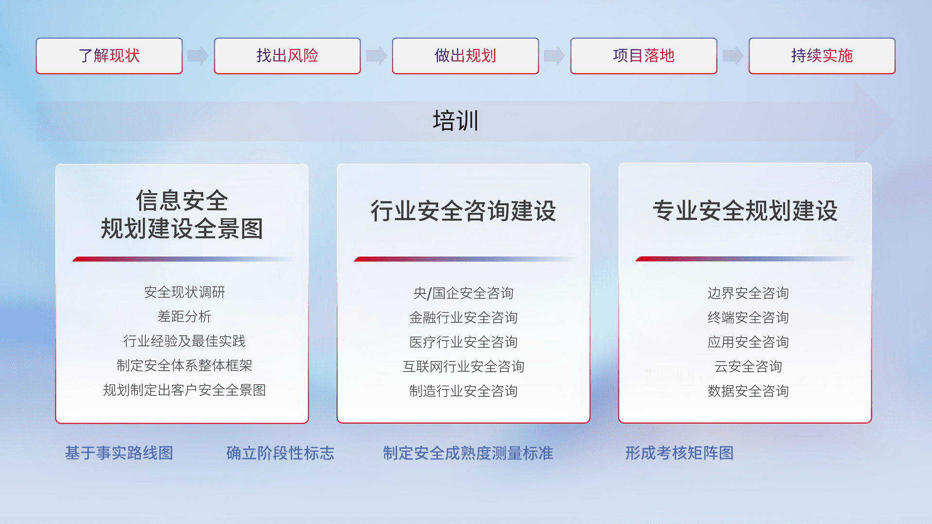 通过专业的法律咨询解读、、、、合规架构体现、、差异化解决方案、、、、测试实施支持等服务,,,,为客户量身打造等保合规体系。。。